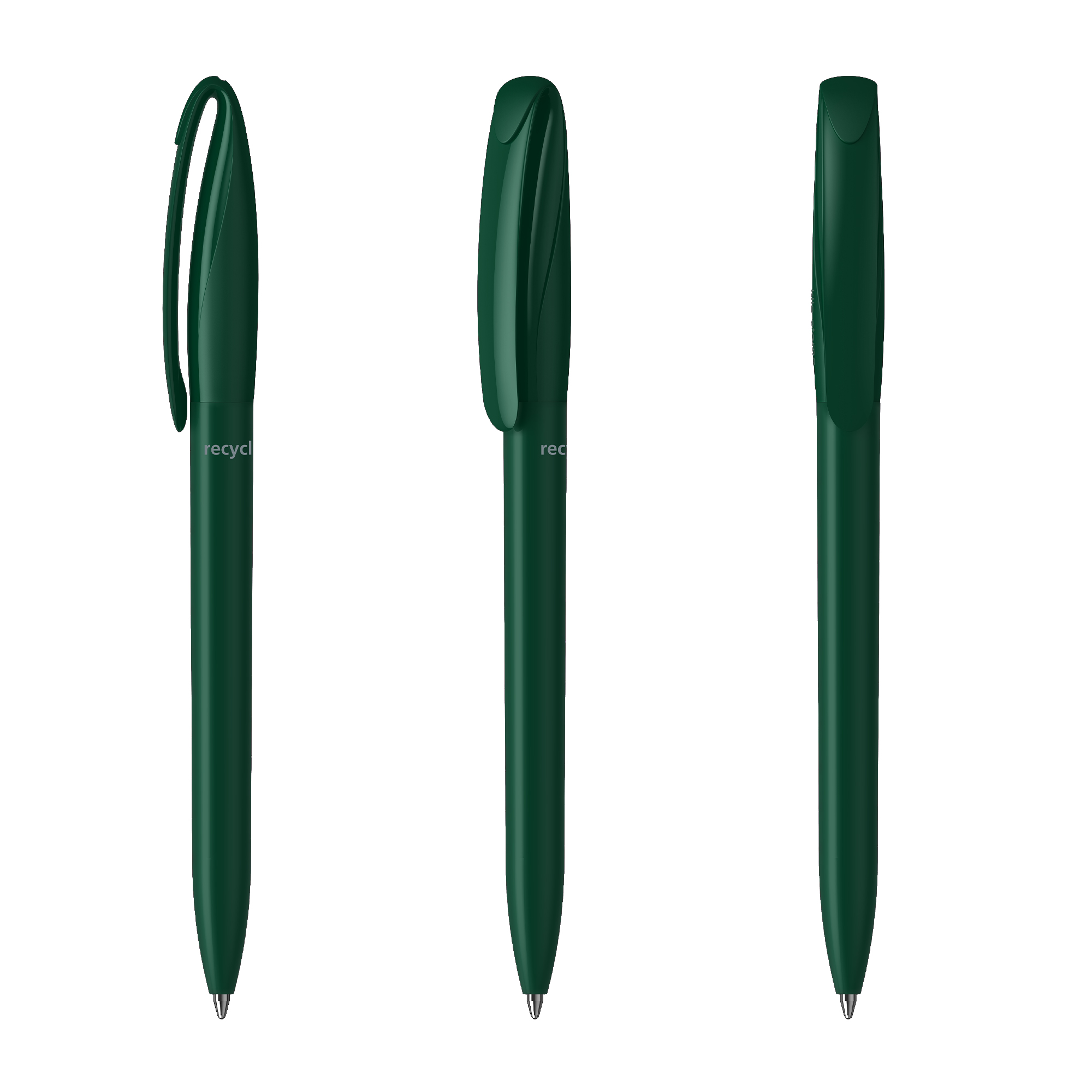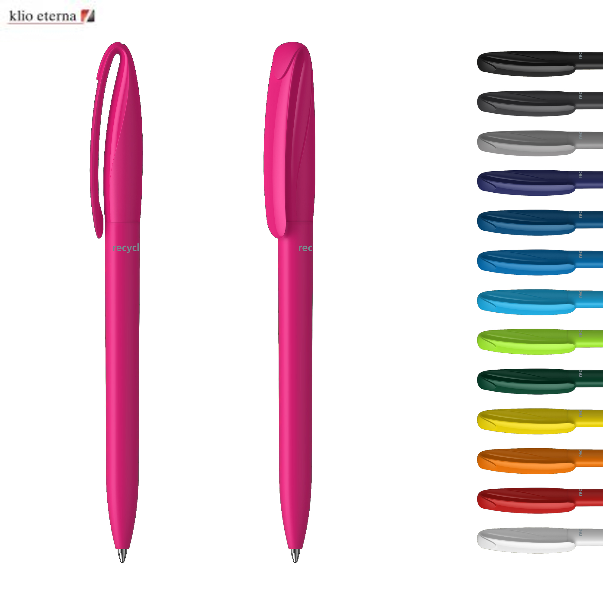Klio the iconic European brand since 1900 now available worldwide. (Klio Model: 41190) Environmentally conscious twist-action pen crafted from recycled plastic featuring a blend of matte and shiny surfaces for a modern aesthetic. Its large printing area clip allows for brand customisation. Equipped with a high-quality silk tech German-manufactured black ink refill meeting ISO 12757-2 standards with a shelf life of 3 years it ensures reliable performance. With an impressive 3000 meters writing distance triple that of standard pens and a tungsten carbide ball for smooth writing it’s designed for lasting quality. Made in Germany. Minimum order of 500 units per colour; custom colours available for orders of 5000+