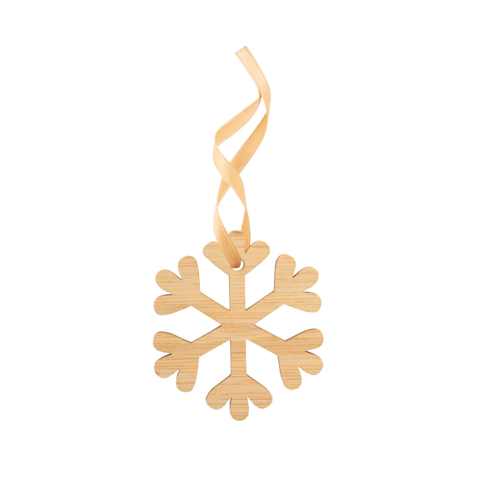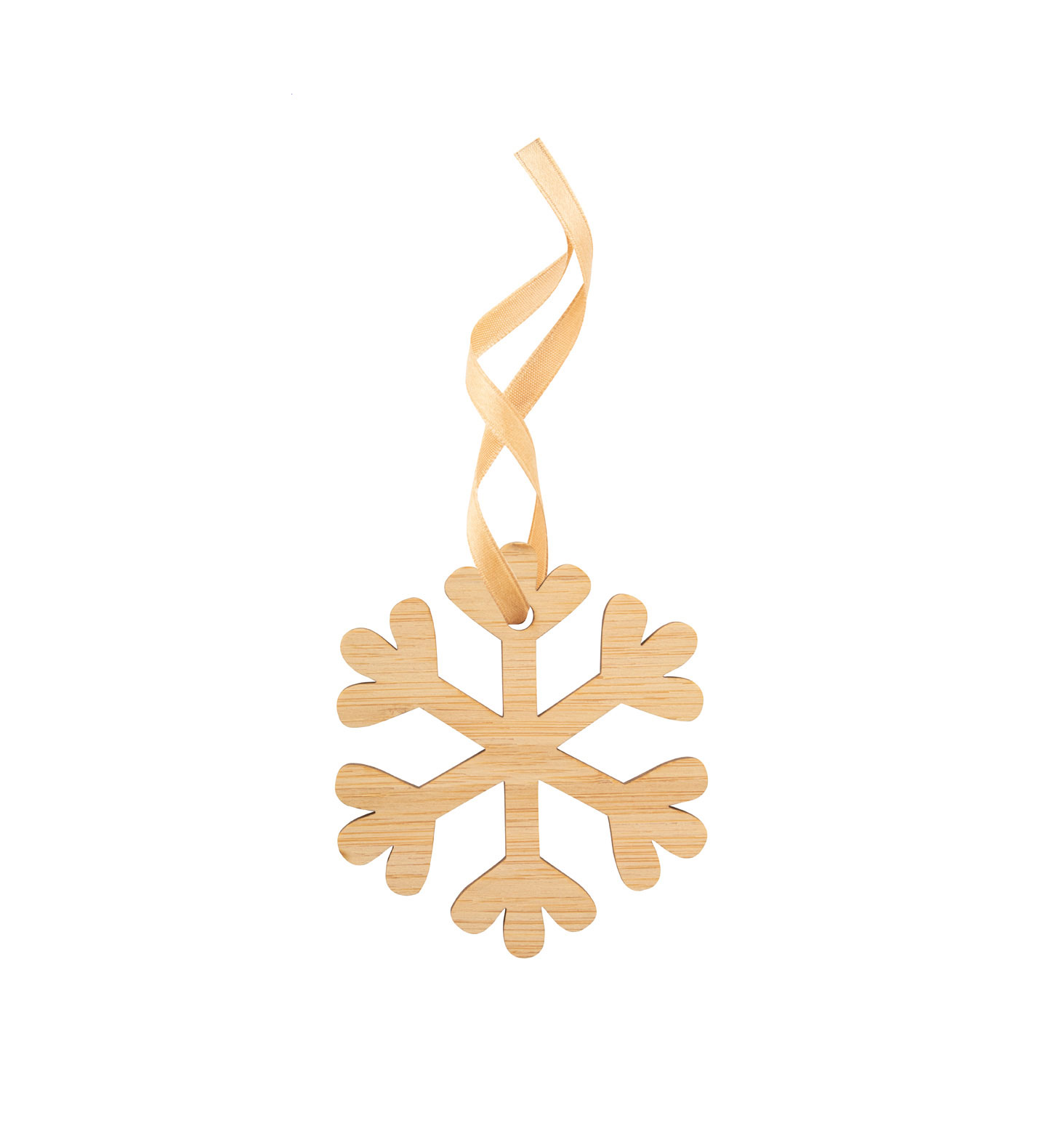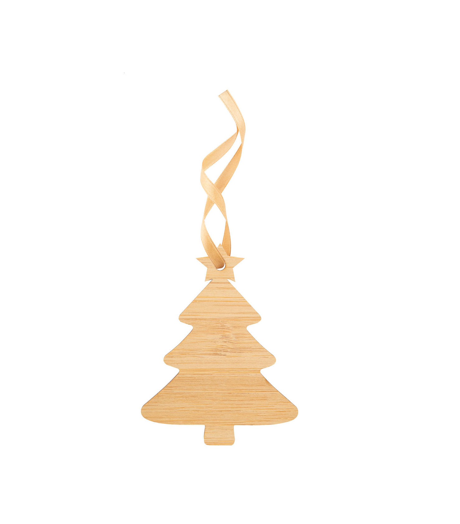 Christmas card in bamboo plywood with break-out Christmas tree ornament with golden ribbon. Including C6 postal envelope. Delivered with detached ribbon.