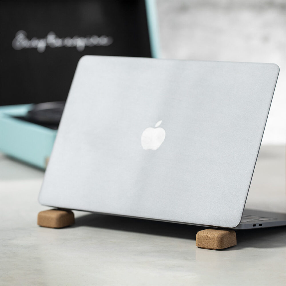Compact laptop holder. Made of cork, to encourage the use of natural raw materials and reduce pollutant emissions. Magnetic and non-slip. Presented in an attractive, eco-designed individual box.