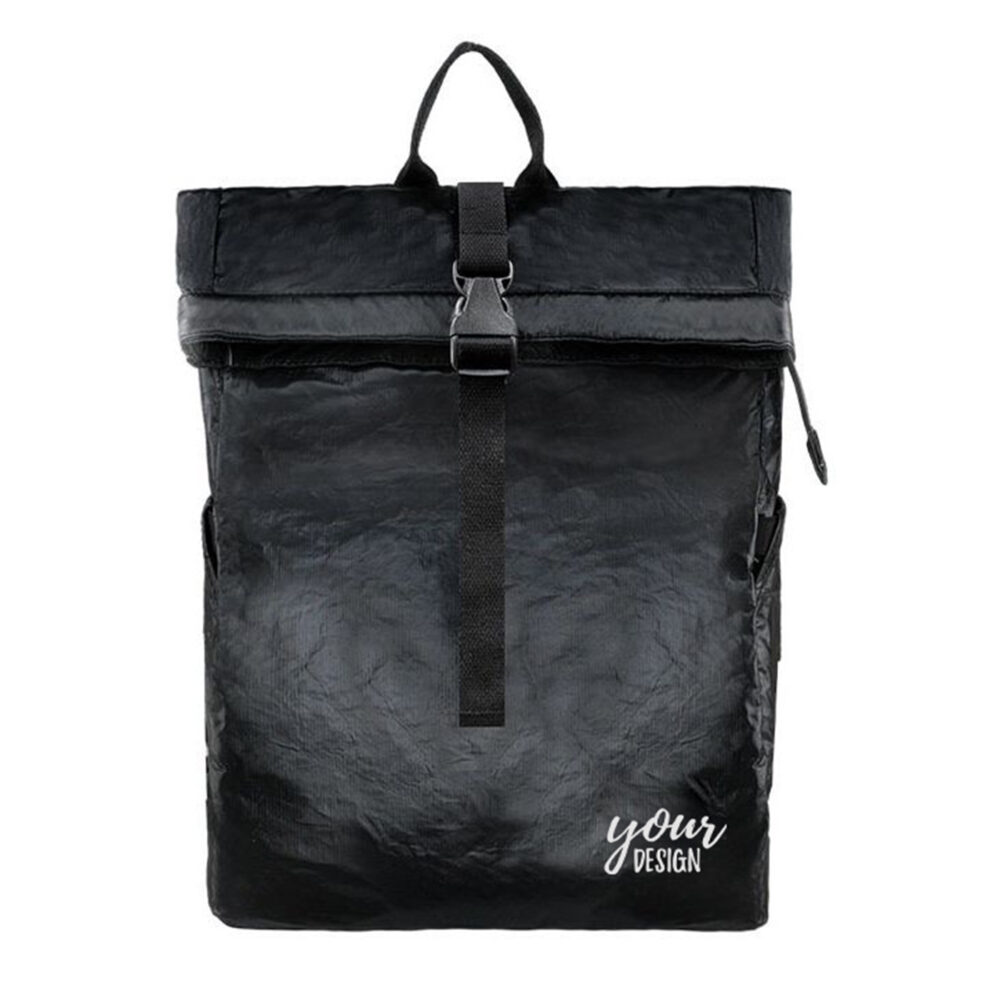 The Dupont paper rolling top backpack is made from durable, biodegradable material, offering compact compartments for your daily items. Ideal for work or travel, it combines style with eco-friendliness. Customization options allow you to add your logo for a personalized touch.