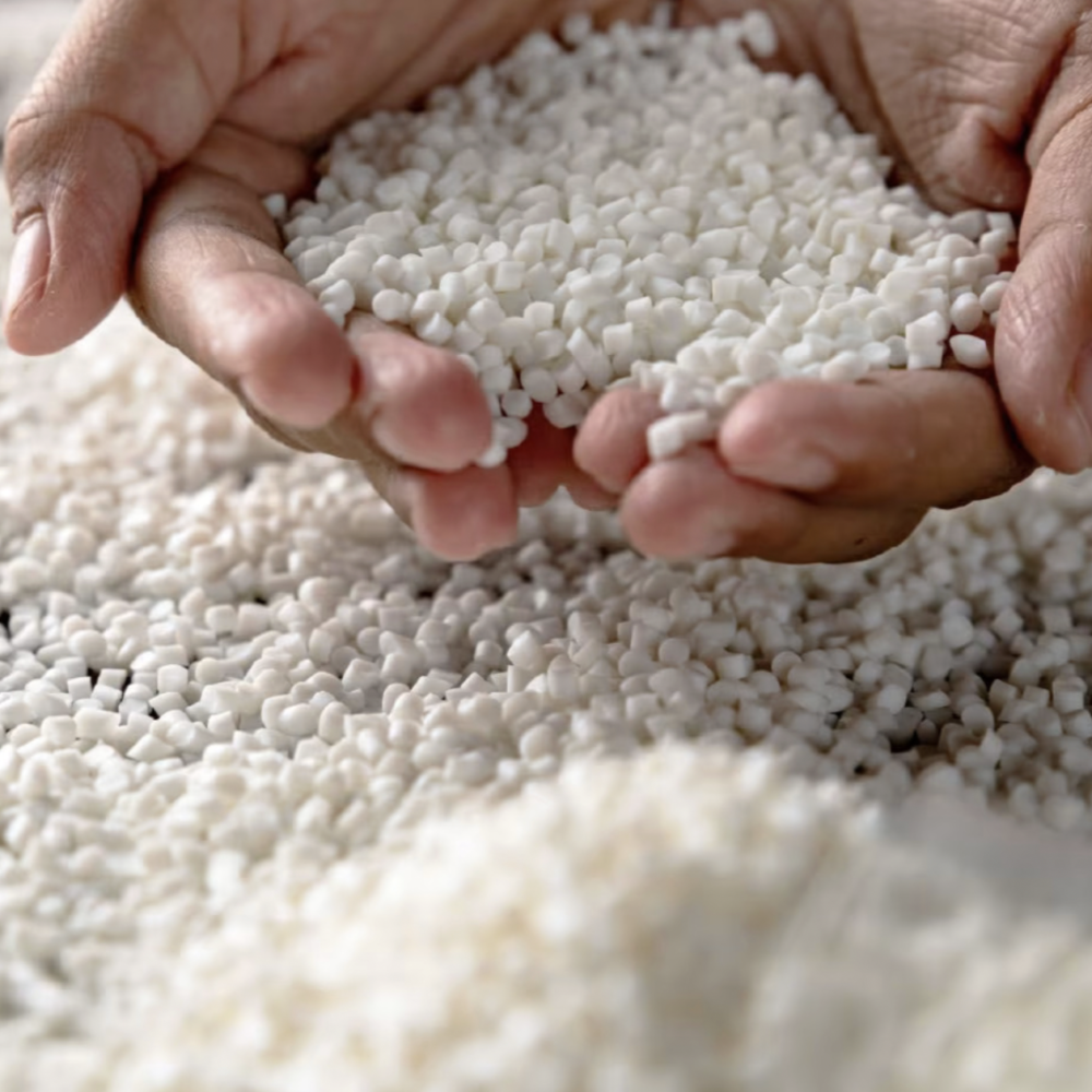All that collected gum is first heat treated at extremely high temperatures, killing off any nasty bacteria. Then it’s blended with a special polymer to create a new material called GUM-TEC®—a flexible, durable compound that’s ready to be reborn. Before it’s used in products, it’s chopped down into pea-sized pellets, perfect for moulding into something fresh and functional.