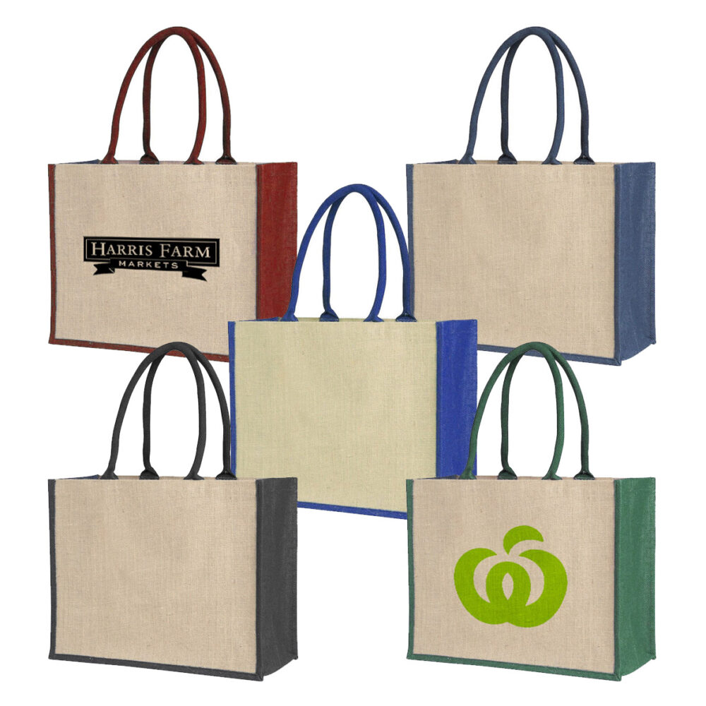 Laminated Jute Supermarket Bag With Coloured Handles And Gussets