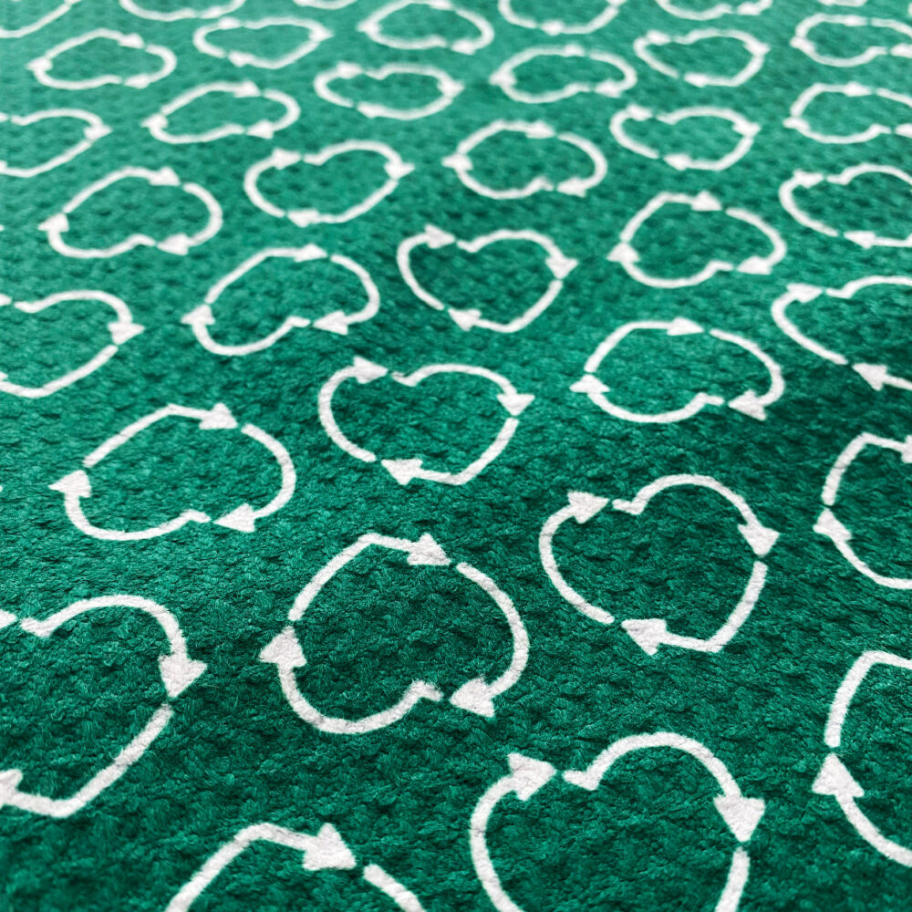 Our Sand free beach towels are fully sublimated both sides and are made from an 80/20 blend of rPET and polyamide with an average of 30 plastic bottles used to make a 380gsm waffle towel and 12 plastic bottles in each 200 gsm suede towel.