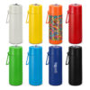 Available in a range of vibrant colours with contrasting lid, handle, and push button