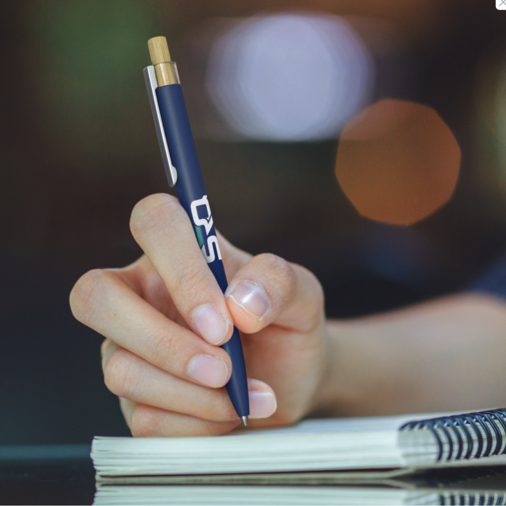– Retractable ballpoint pen with a recycled aluminium barrel